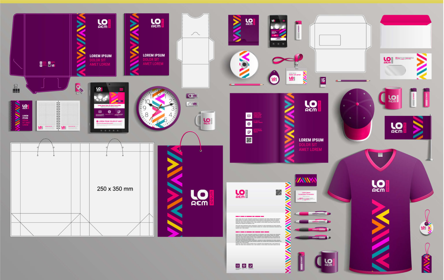 Branded pens, notebooks, mugs, keychains, and office accessories